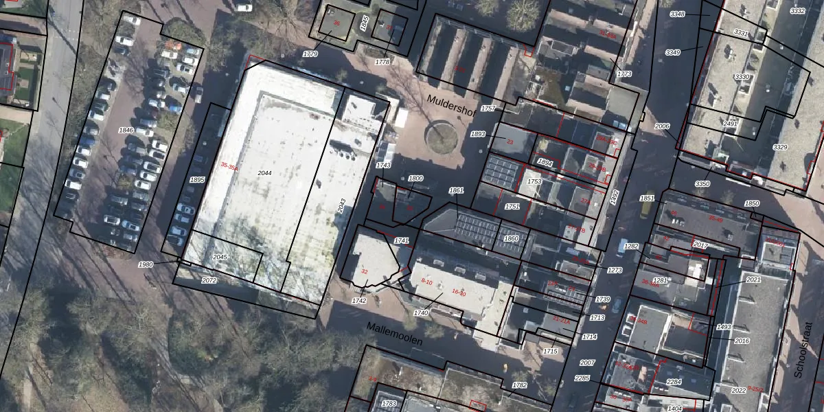 Het perceel waarop Muldershof 33 staat heeft een oppervlakte van 56 m². Dit is een klein perceel. De perceeloppervlakte wordt geregistreerd door het Kadaster. Gedetailleerde informatie over de maten van dit perceel kunt u vinden in het rapport Kadastrale kaart met maatvoering van Muldershof 33.