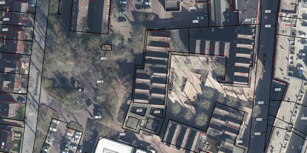 Het perceel waarop Muldershof 59 staat heeft een oppervlakte van 1035 m². Dit is een zeer groot perceel. De perceeloppervlakte wordt geregistreerd door het Kadaster. Gedetailleerde informatie over de maten van dit perceel kunt u vinden in het rapport Kadastrale kaart met maatvoering van Muldershof 59.