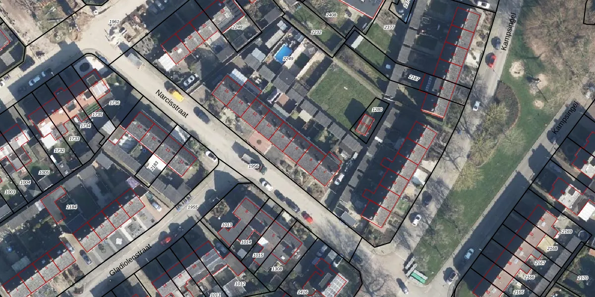Het perceel waarop Narcisstraat 6 staat heeft een oppervlakte van 4333 m². Dit is een zeer groot perceel. De perceeloppervlakte wordt geregistreerd door het Kadaster. Gedetailleerde informatie over de maten van dit perceel kunt u vinden in het rapport Kadastrale kaart met maatvoering van Narcisstraat 6.