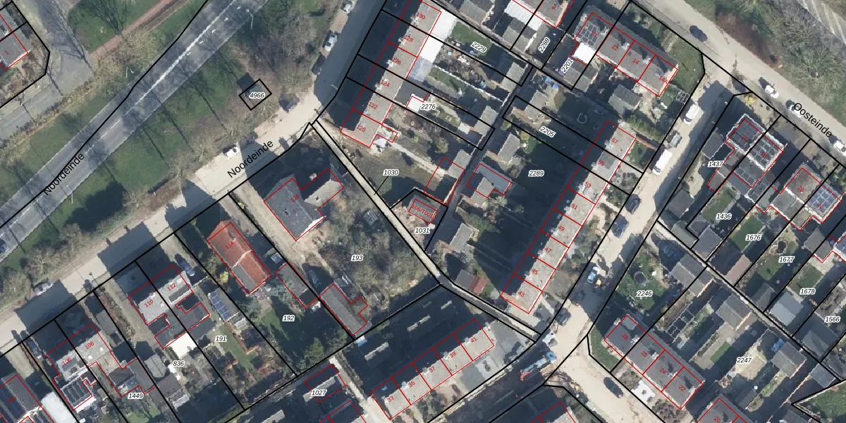 Het perceel waarop Noordeinde 106-T001 staat heeft een oppervlakte van 102 m². Dit is een middelgroot perceel. De perceeloppervlakte wordt geregistreerd door het Kadaster. Gedetailleerde informatie over de maten van dit perceel kunt u vinden in het rapport Kadastrale kaart met maatvoering van Noordeinde 106-T001.