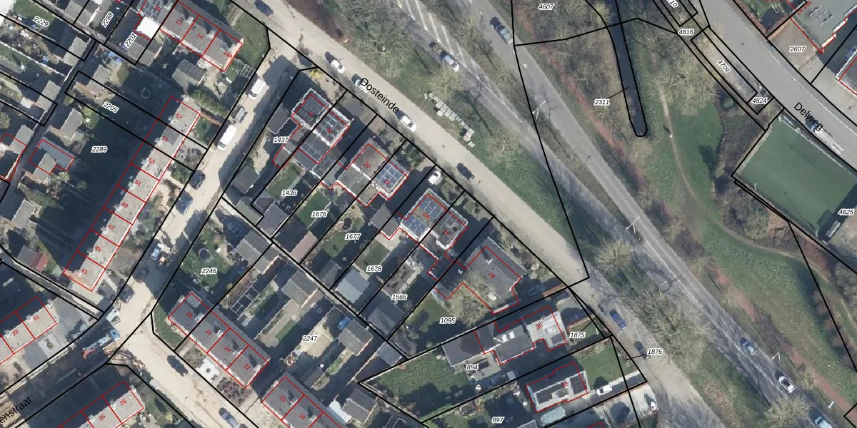 Oosteinde 24 is gelegen op kadastraal perceel ZVN02L1678. Deze kadastrale aanduiding is uniek en wordt gebruikt door het Kadaster om eigendomsrechten en andere zakelijke rechten vast te leggen. Het perceel maakt onderdeel uit van de kadastrale gemeente Oud-Zevenaar.