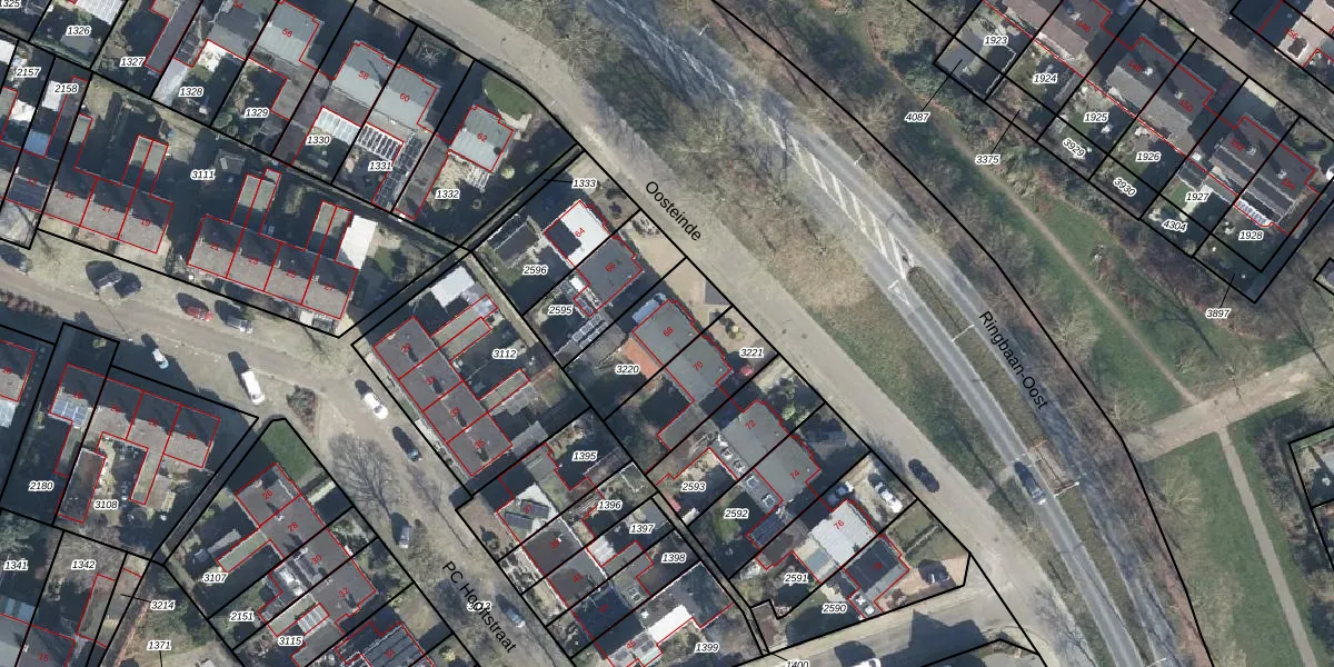 Gebruik de zoekbalk of klik op een perceel voor informatie over de adressen binnen dit perceel.
