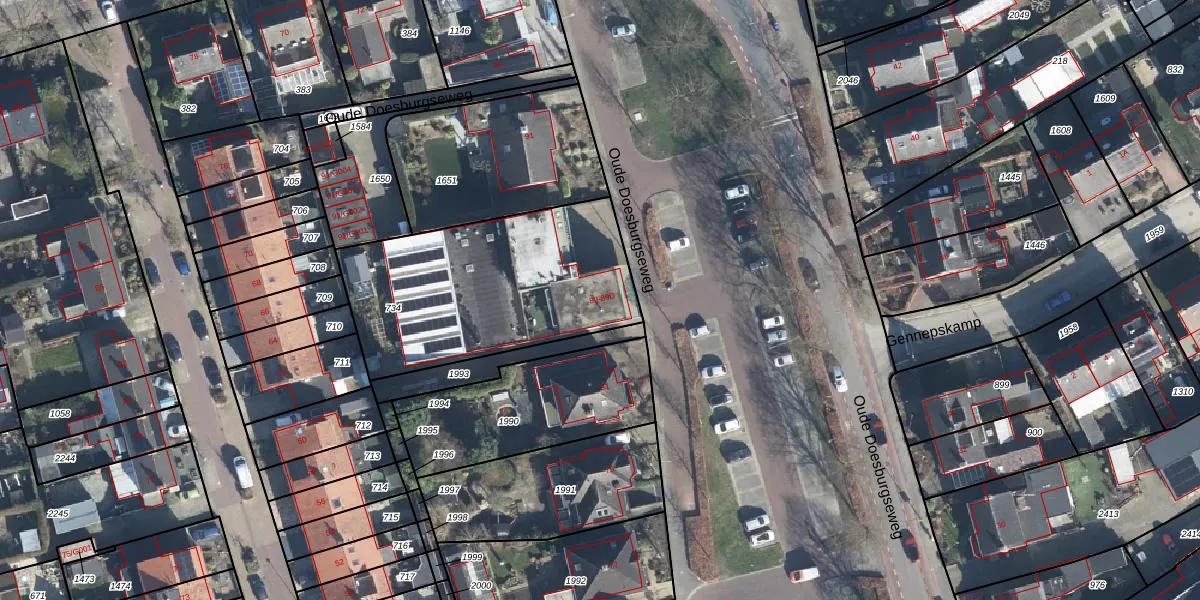 Het perceel waarop Oude Doesburgseweg 89 staat heeft een oppervlakte van 1037 m². Dit is een zeer groot perceel. De perceeloppervlakte wordt geregistreerd door het Kadaster. Gedetailleerde informatie over de maten van dit perceel kunt u vinden in het rapport Kadastrale kaart met maatvoering van Oude Doesburgseweg 89.