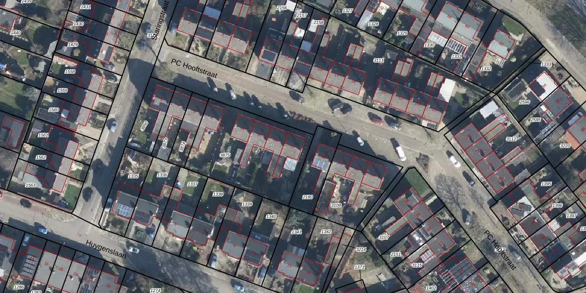 Het perceel waarop PC Hooftstraat 16 staat heeft een oppervlakte van 976 m². Dit is een groot perceel. De perceeloppervlakte wordt geregistreerd door het Kadaster. Gedetailleerde informatie over de maten van dit perceel kunt u vinden in het rapport Kadastrale kaart met maatvoering van PC Hooftstraat 16.