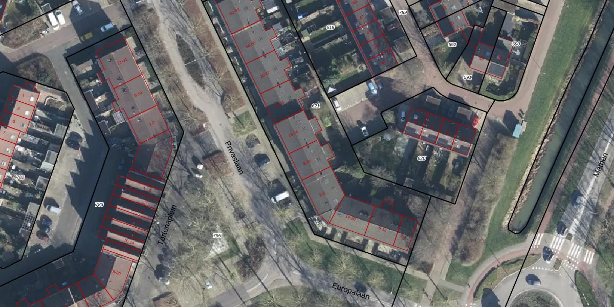 Privaslaan 12 is gelegen op kadastraal perceel ZVN02G621. Deze kadastrale aanduiding is uniek en wordt gebruikt door het Kadaster om eigendomsrechten en andere zakelijke rechten vast te leggen. Het perceel maakt onderdeel uit van de kadastrale gemeente Oud-Zevenaar.