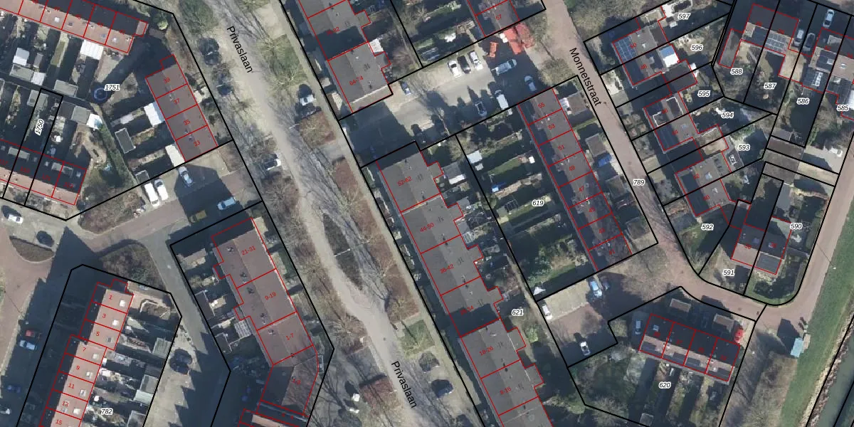 Privaslaan 46 is gelegen op kadastraal perceel ZVN02G621. Deze kadastrale aanduiding is uniek en wordt gebruikt door het Kadaster om eigendomsrechten en andere zakelijke rechten vast te leggen. Het perceel maakt onderdeel uit van de kadastrale gemeente Oud-Zevenaar.