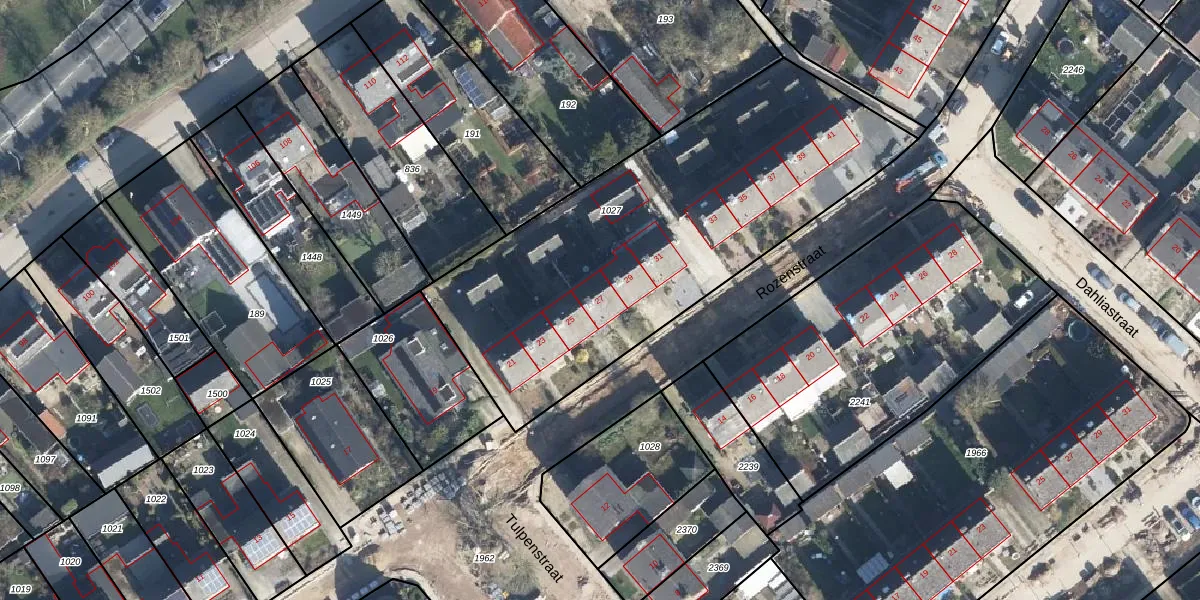Het perceel waarop Rozenstraat 27 staat heeft een oppervlakte van 2040 m². Dit is een zeer groot perceel. De perceeloppervlakte wordt geregistreerd door het Kadaster. Gedetailleerde informatie over de maten van dit perceel kunt u vinden in het rapport Kadastrale kaart met maatvoering van Rozenstraat 27.