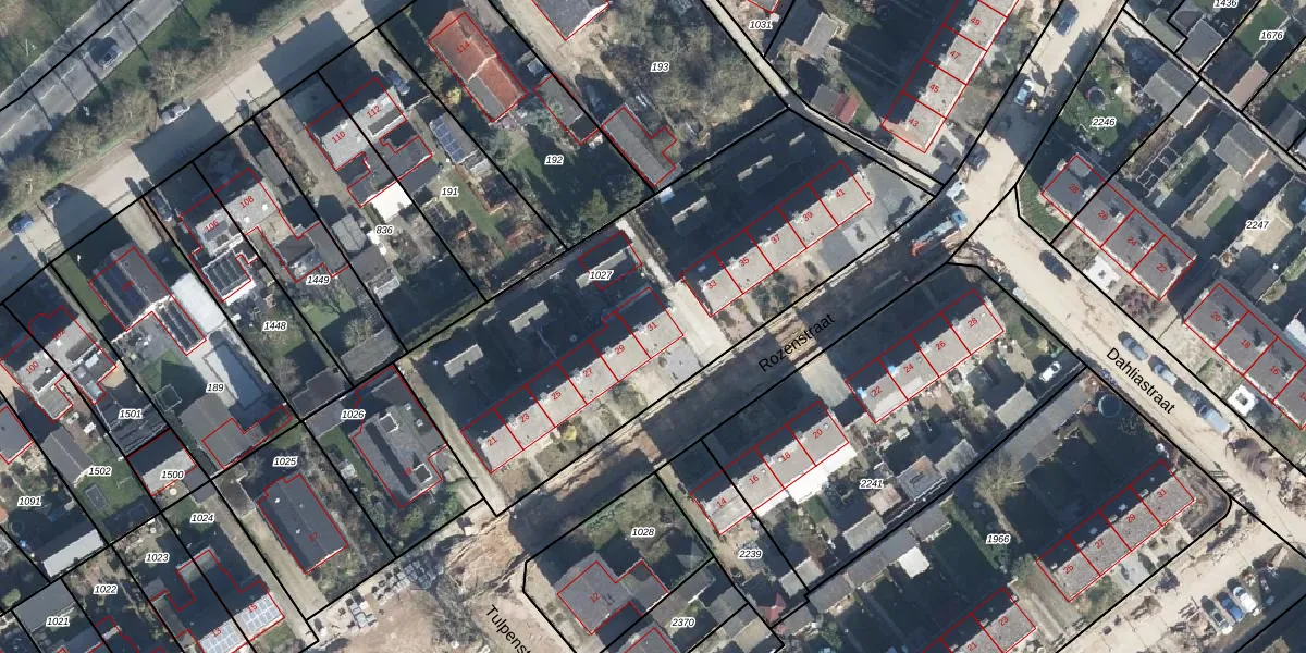 Het perceel waarop Rozenstraat 31 staat heeft een oppervlakte van 2040 m². Dit is een zeer groot perceel. De perceeloppervlakte wordt geregistreerd door het Kadaster. Gedetailleerde informatie over de maten van dit perceel kunt u vinden in het rapport Kadastrale kaart met maatvoering van Rozenstraat 31.