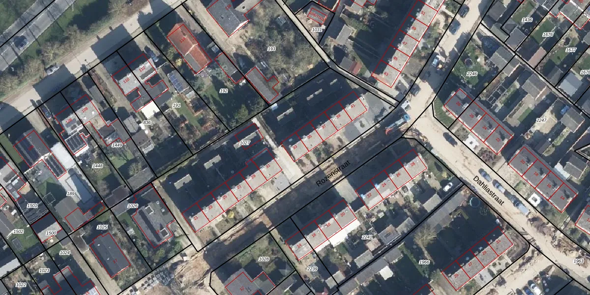 Het perceel waarop Rozenstraat 33 staat heeft een oppervlakte van 2040 m². Dit is een zeer groot perceel. De perceeloppervlakte wordt geregistreerd door het Kadaster. Gedetailleerde informatie over de maten van dit perceel kunt u vinden in het rapport Kadastrale kaart met maatvoering van Rozenstraat 33.