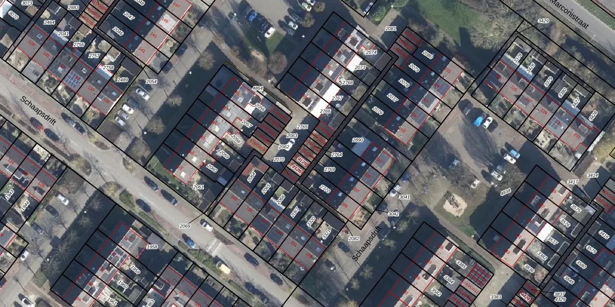 Gebruik de zoekbalk of klik op een perceel voor informatie over de adressen binnen dit perceel.