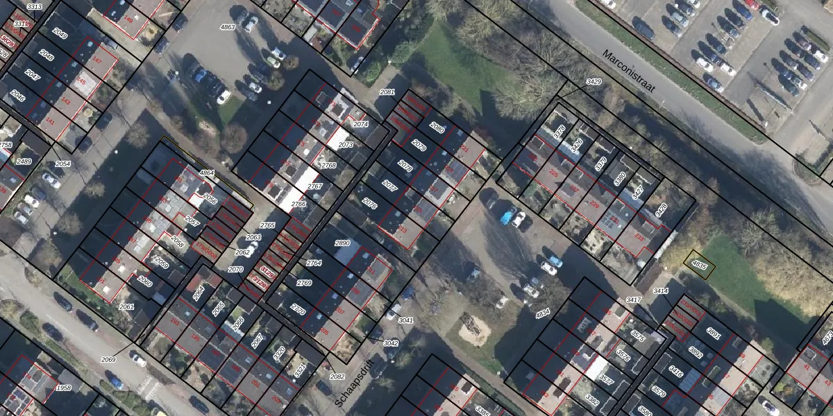 Schaapsdrift 215 is gelegen op kadastraal perceel ZVN02C2077. Deze kadastrale aanduiding is uniek en wordt gebruikt door het Kadaster om eigendomsrechten en andere zakelijke rechten vast te leggen. Het perceel maakt onderdeel uit van de kadastrale gemeente Oud-Zevenaar.