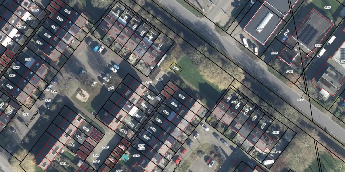 Schaapsdrift 233-G001 is gelegen op kadastraal perceel ZVN02C3891. Deze kadastrale aanduiding is uniek en wordt gebruikt door het Kadaster om eigendomsrechten en andere zakelijke rechten vast te leggen. Het perceel maakt onderdeel uit van de kadastrale gemeente Oud-Zevenaar.