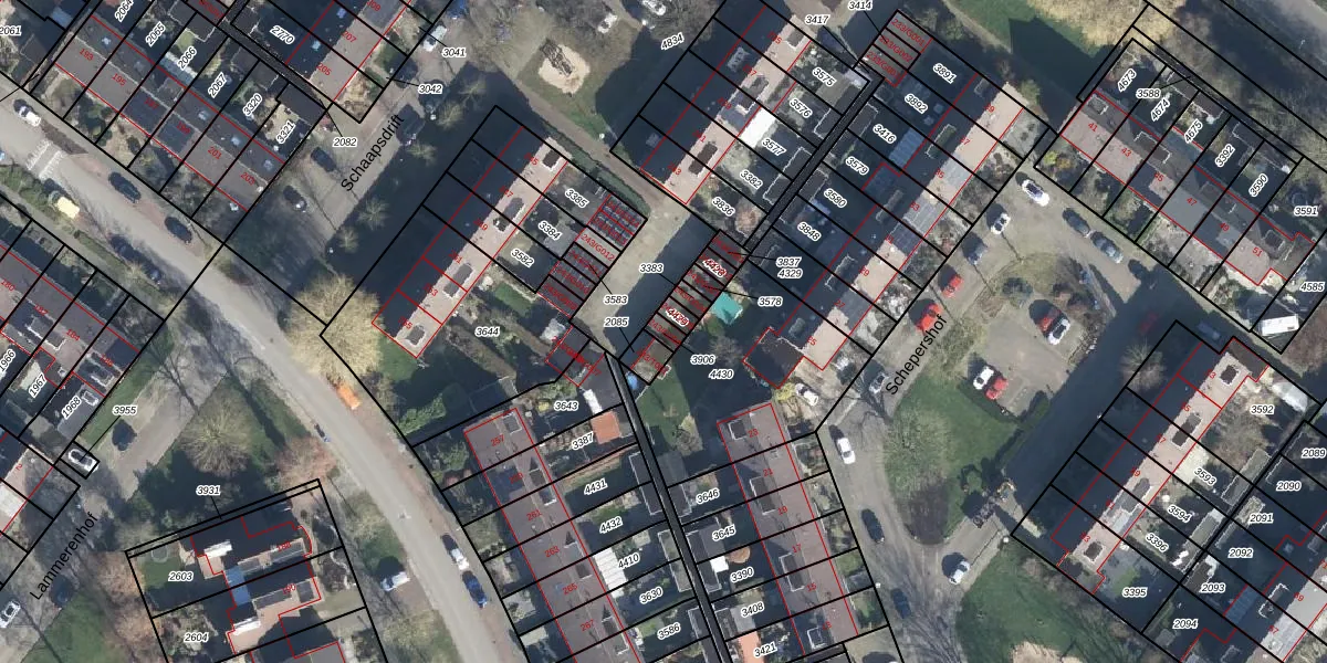 Gebruik de zoekbalk of klik op een perceel voor informatie over de adressen binnen dit perceel.