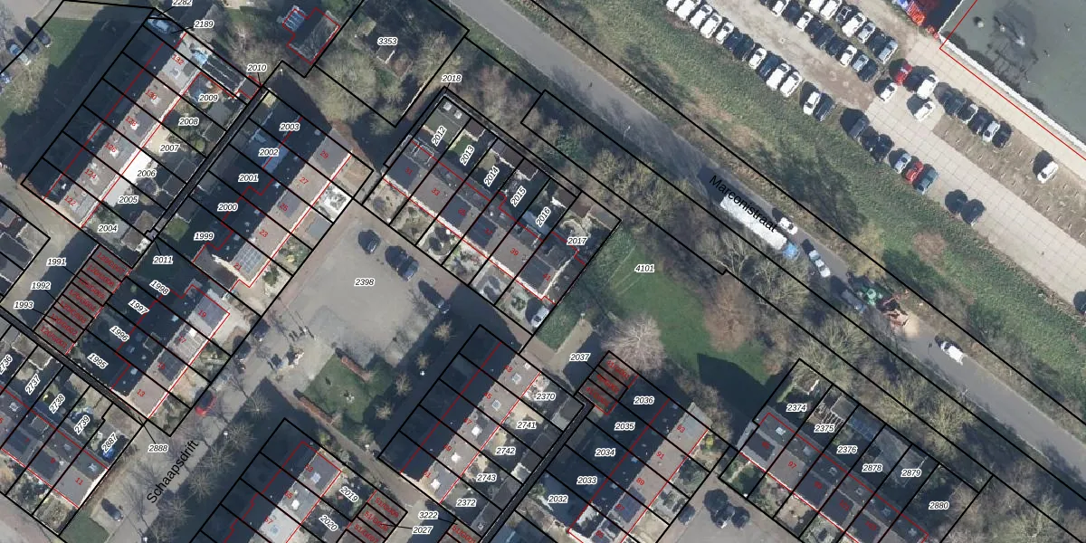 Gebruik de zoekbalk of klik op een perceel voor informatie over de adressen binnen dit perceel.