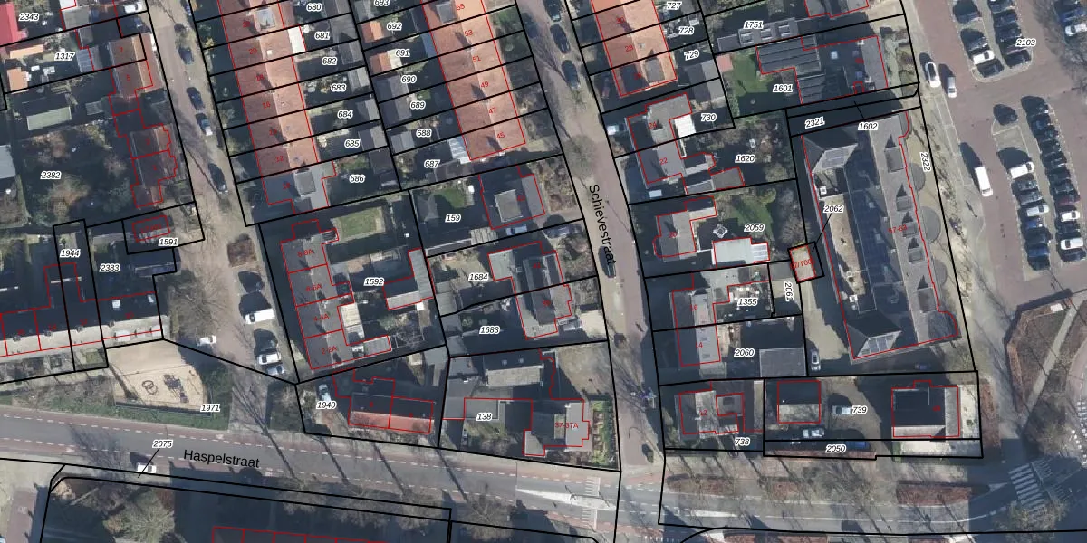 Het perceel waarop Schievestraat 41 staat heeft een oppervlakte van 319 m². Dit is een groot perceel. De perceeloppervlakte wordt geregistreerd door het Kadaster. Gedetailleerde informatie over de maten van dit perceel kunt u vinden in het rapport Kadastrale kaart met maatvoering van Schievestraat 41.
