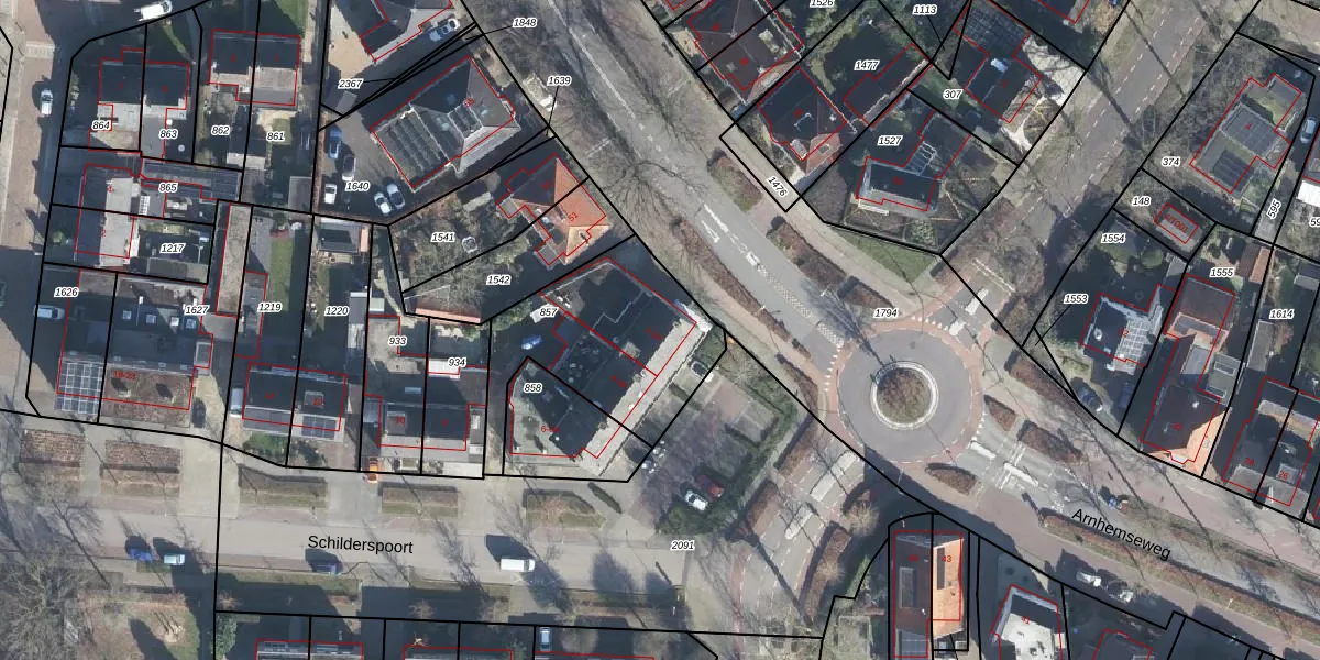 Het perceel waarop Schilderspoort 2 staat heeft een oppervlakte van 677 m². Dit is een groot perceel. De perceeloppervlakte wordt geregistreerd door het Kadaster. Gedetailleerde informatie over de maten van dit perceel kunt u vinden in het rapport Kadastrale kaart met maatvoering van Schilderspoort 2.