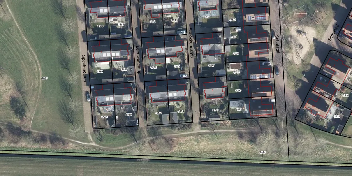 Het perceel waarop Schokkencamp 6 staat heeft een oppervlakte van 325 m². Dit is een groot perceel. De perceeloppervlakte wordt geregistreerd door het Kadaster. Gedetailleerde informatie over de maten van dit perceel kunt u vinden in het rapport Kadastrale kaart met maatvoering van Schokkencamp 6.