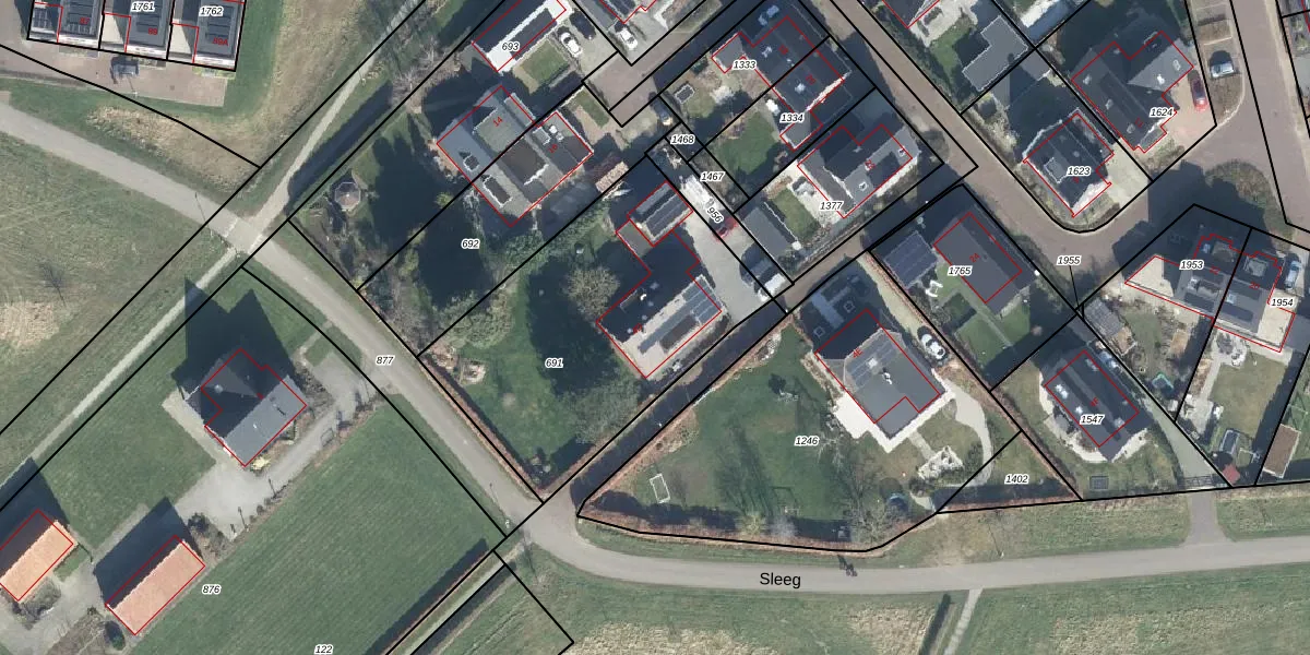 Het perceel waarop Sleeg 4-D staat heeft een oppervlakte van 1344 m². Dit is een zeer groot perceel. De perceeloppervlakte wordt geregistreerd door het Kadaster. Gedetailleerde informatie over de maten van dit perceel kunt u vinden in het rapport Kadastrale kaart met maatvoering van Sleeg 4-D.