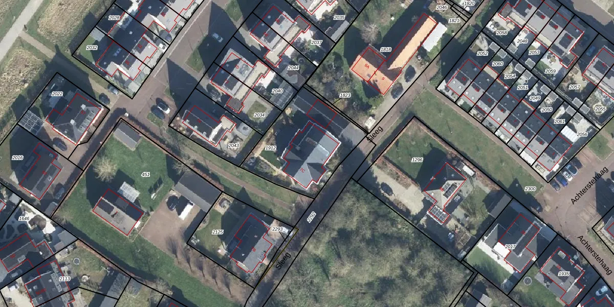 Het perceel waarop Sleeg 7-C staat heeft een oppervlakte van 789 m². Dit is een groot perceel. De perceeloppervlakte wordt geregistreerd door het Kadaster. Gedetailleerde informatie over de maten van dit perceel kunt u vinden in het rapport Kadastrale kaart met maatvoering van Sleeg 7-C.