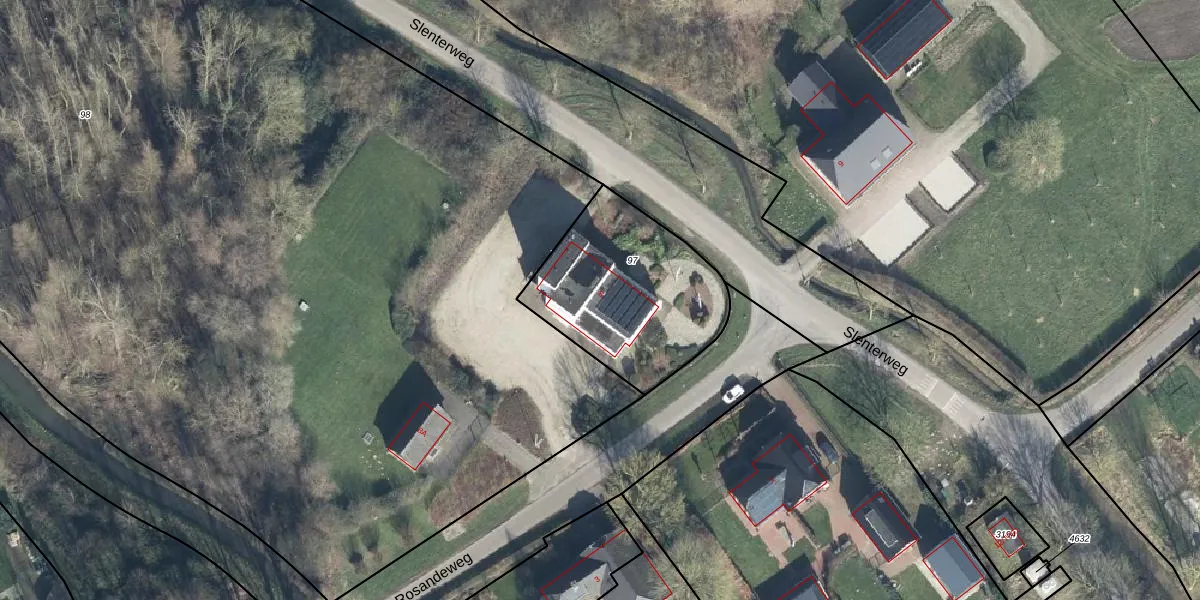 Het perceel waarop Slenterweg 8 staat heeft een oppervlakte van 695 m². Dit is een groot perceel. De perceeloppervlakte wordt geregistreerd door het Kadaster. Gedetailleerde informatie over de maten van dit perceel kunt u vinden in het rapport Kadastrale kaart met maatvoering van Slenterweg 8.