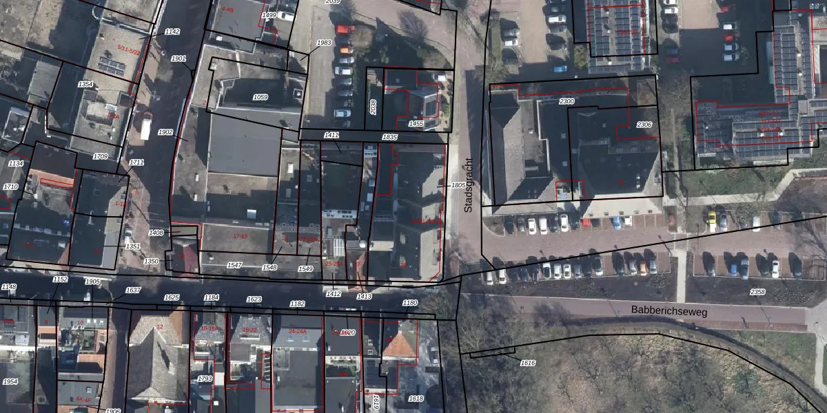 Het perceel waarop Stadsgracht 3-102 staat heeft een oppervlakte van 605 m². Dit is een groot perceel. De perceeloppervlakte wordt geregistreerd door het Kadaster. Gedetailleerde informatie over de maten van dit perceel kunt u vinden in het rapport Kadastrale kaart met maatvoering van Stadsgracht 3-102.
