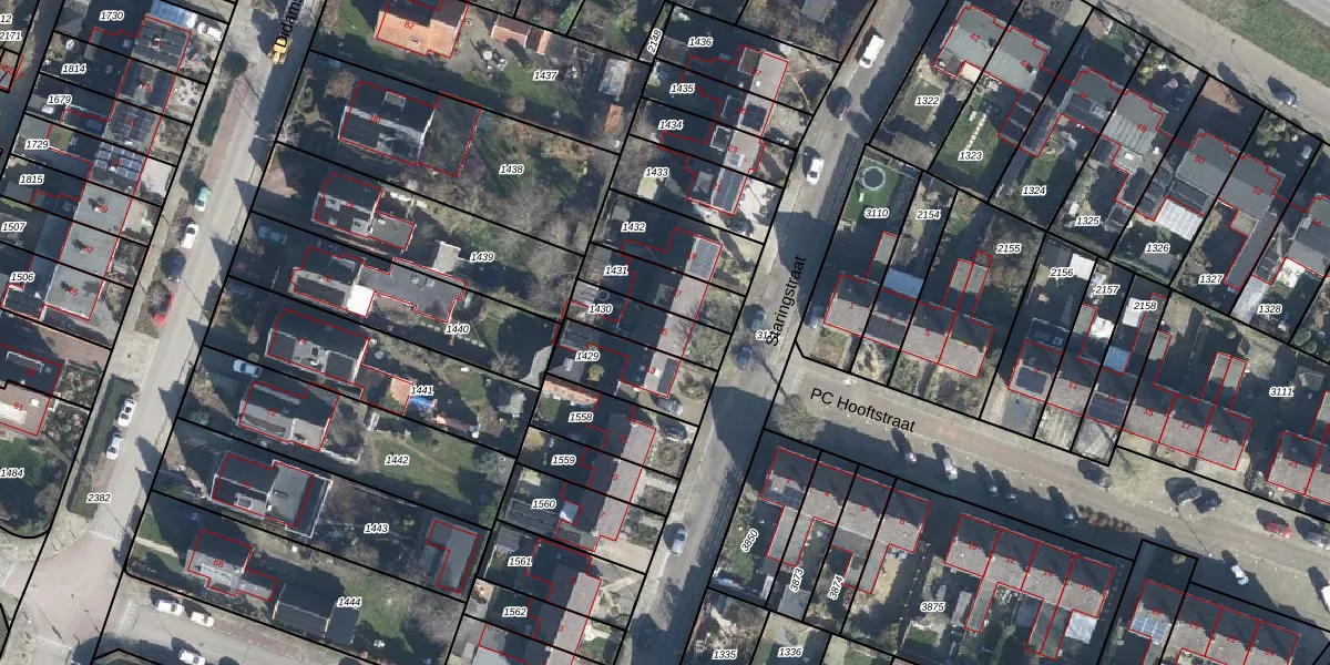 Het perceel waarop Staringstraat 15 staat heeft een oppervlakte van 148 m². Dit is een middelgroot perceel. De perceeloppervlakte wordt geregistreerd door het Kadaster. Gedetailleerde informatie over de maten van dit perceel kunt u vinden in het rapport Kadastrale kaart met maatvoering van Staringstraat 15.