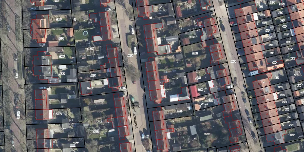 Subenharastraat 14 is gelegen op kadastraal perceel ZVN02L2342. Deze kadastrale aanduiding is uniek en wordt gebruikt door het Kadaster om eigendomsrechten en andere zakelijke rechten vast te leggen. Het perceel maakt onderdeel uit van de kadastrale gemeente Oud-Zevenaar.