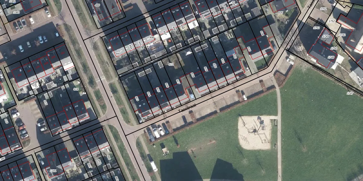 Tasstraat 9 is gelegen op kadastraal perceel ZVN02M827. Deze kadastrale aanduiding is uniek en wordt gebruikt door het Kadaster om eigendomsrechten en andere zakelijke rechten vast te leggen. Het perceel maakt onderdeel uit van de kadastrale gemeente Oud-Zevenaar.