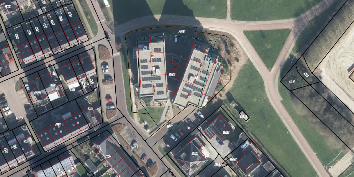 Het perceel waarop Tolsingel 39 staat heeft een oppervlakte van 1643 m². Dit is een zeer groot perceel. De perceeloppervlakte wordt geregistreerd door het Kadaster. Gedetailleerde informatie over de maten van dit perceel kunt u vinden in het rapport Kadastrale kaart met maatvoering van Tolsingel 39.