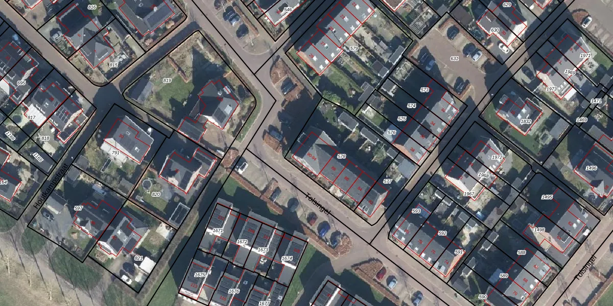Het perceel waarop Tolsingel 94 staat heeft een oppervlakte van 733 m². Dit is een groot perceel. De perceeloppervlakte wordt geregistreerd door het Kadaster. Gedetailleerde informatie over de maten van dit perceel kunt u vinden in het rapport Kadastrale kaart met maatvoering van Tolsingel 94.