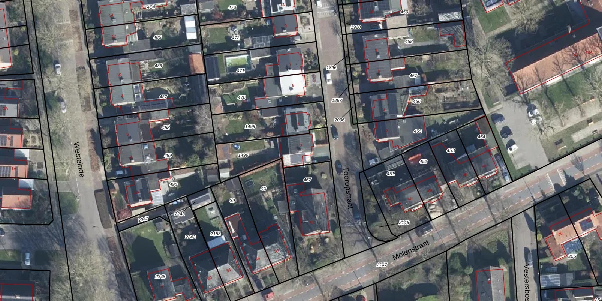 Het perceel waarop Tooropstraat 1 staat heeft een oppervlakte van 381 m². Dit is een groot perceel. De perceeloppervlakte wordt geregistreerd door het Kadaster. Gedetailleerde informatie over de maten van dit perceel kunt u vinden in het rapport Kadastrale kaart met maatvoering van Tooropstraat 1.