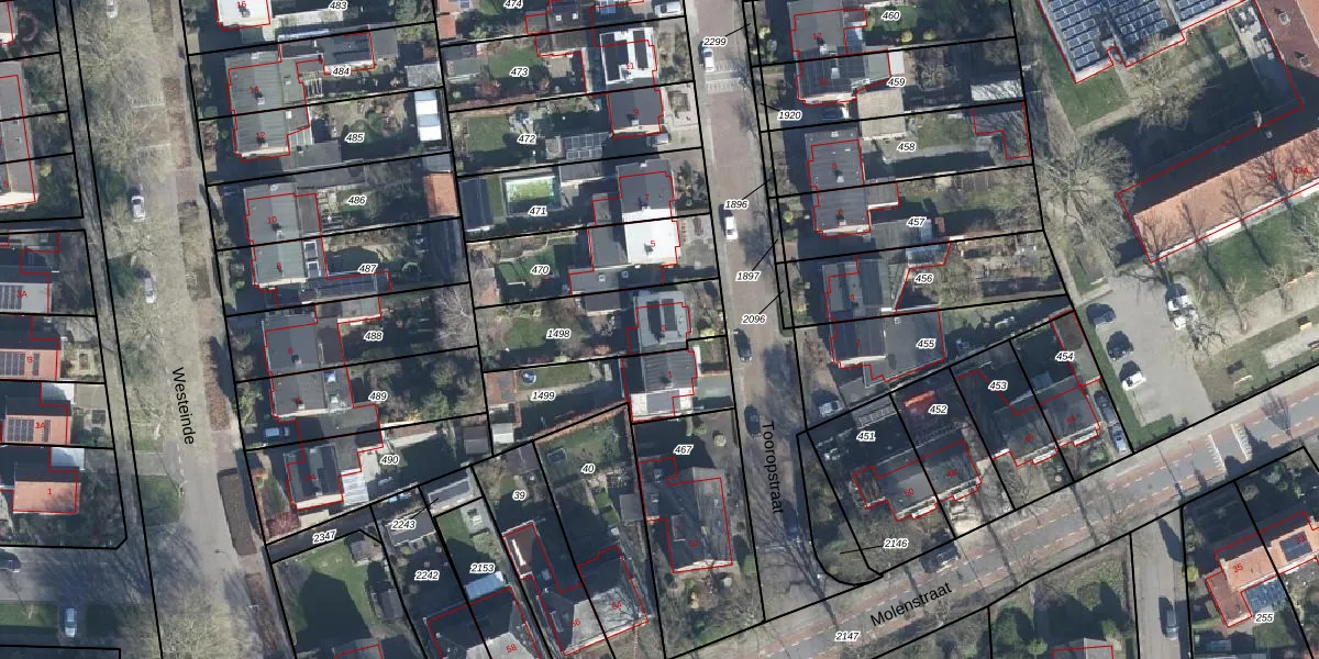 Het perceel waarop Tooropstraat 3 staat heeft een oppervlakte van 366 m². Dit is een groot perceel. De perceeloppervlakte wordt geregistreerd door het Kadaster. Gedetailleerde informatie over de maten van dit perceel kunt u vinden in het rapport Kadastrale kaart met maatvoering van Tooropstraat 3.