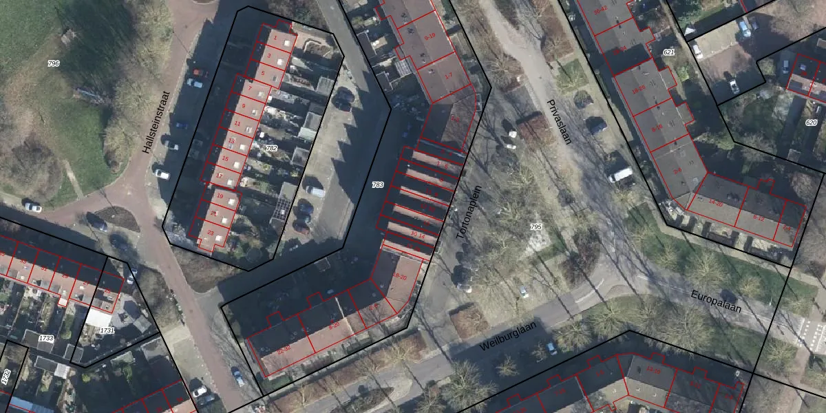 Het perceel waarop Tortonaplein 10 staat heeft een oppervlakte van 2735 m². Dit is een zeer groot perceel. De perceeloppervlakte wordt geregistreerd door het Kadaster. Gedetailleerde informatie over de maten van dit perceel kunt u vinden in het rapport Kadastrale kaart met maatvoering van Tortonaplein 10.