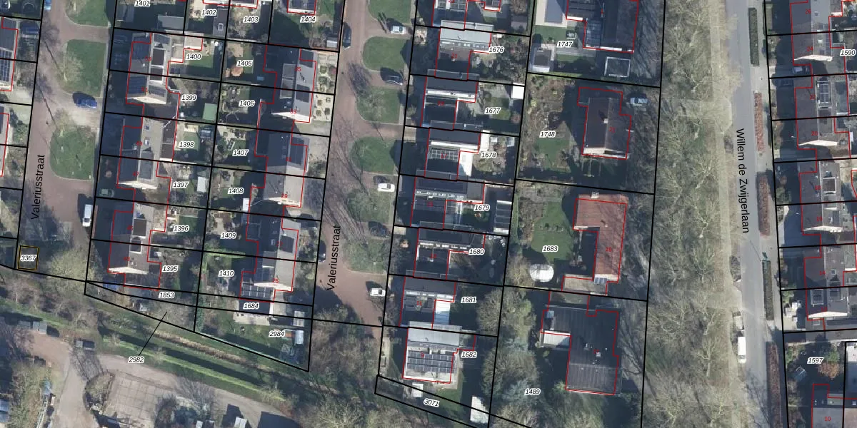 Gebruik de zoekbalk of klik op een perceel voor informatie over de adressen binnen dit perceel.