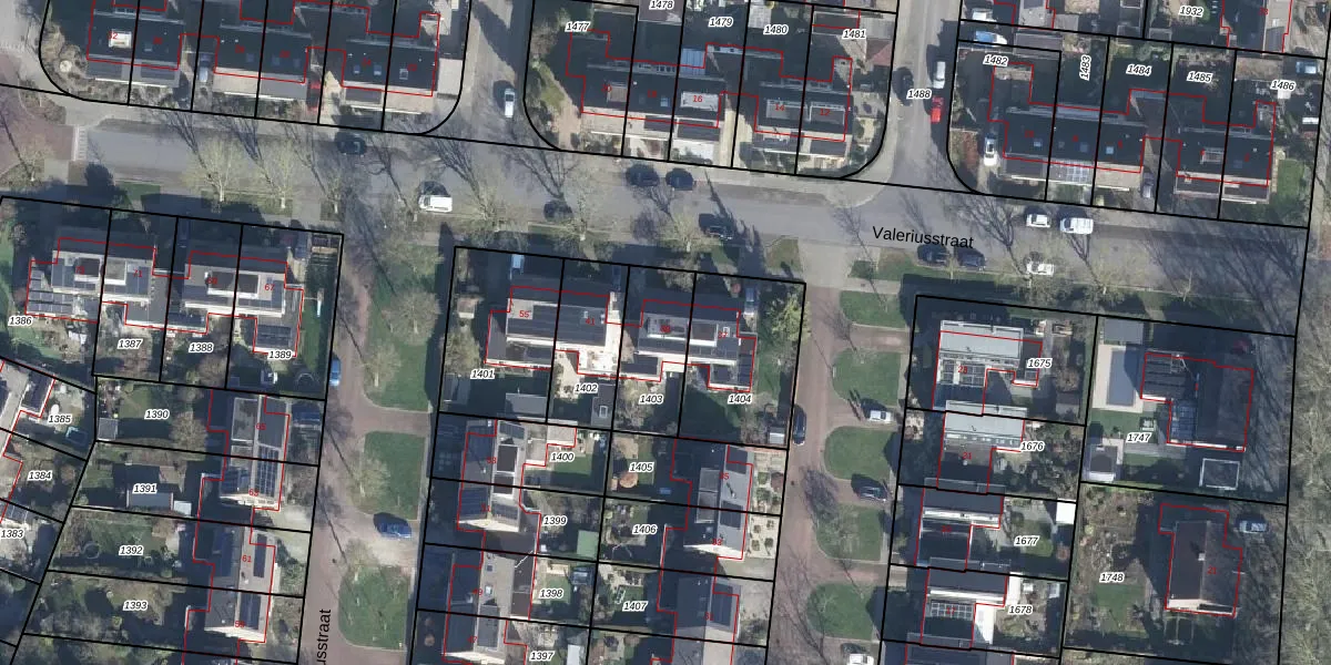 Het perceel waarop Valeriusstraat 39 staat heeft een oppervlakte van 249 m². Dit is een middelgroot perceel. De perceeloppervlakte wordt geregistreerd door het Kadaster. Gedetailleerde informatie over de maten van dit perceel kunt u vinden in het rapport Kadastrale kaart met maatvoering van Valeriusstraat 39.