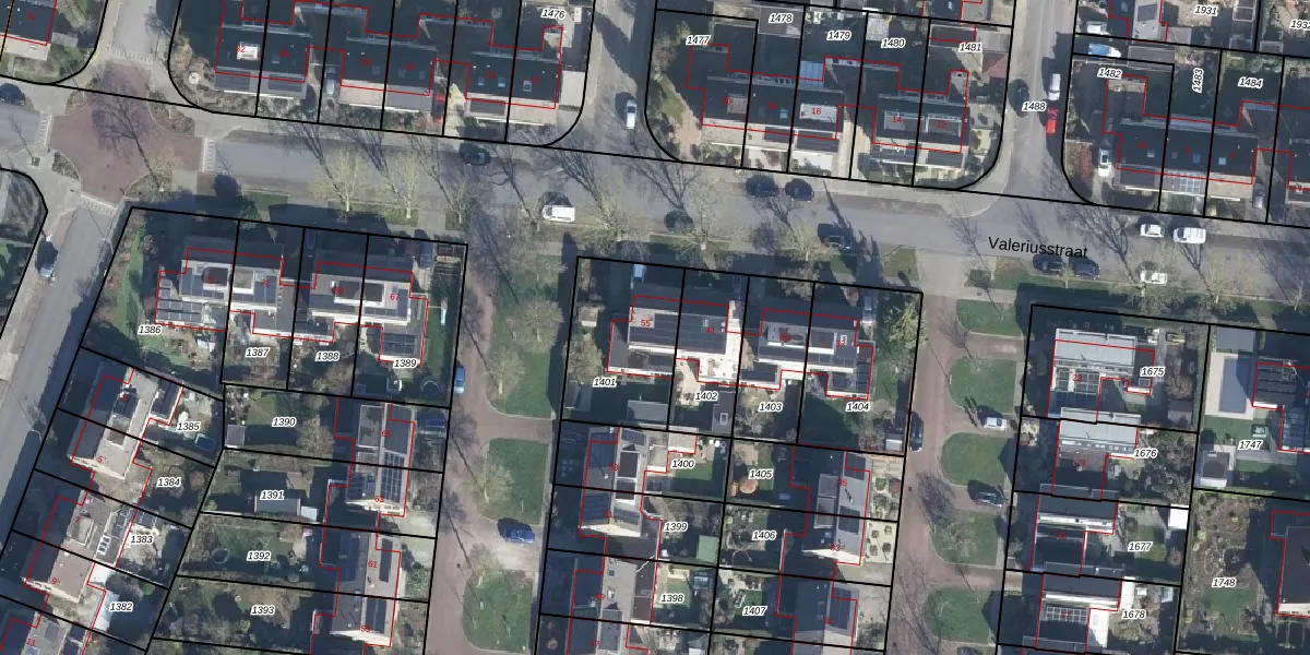 Het perceel waarop Valeriusstraat 55 staat heeft een oppervlakte van 413 m². Dit is een groot perceel. De perceeloppervlakte wordt geregistreerd door het Kadaster. Gedetailleerde informatie over de maten van dit perceel kunt u vinden in het rapport Kadastrale kaart met maatvoering van Valeriusstraat 55.