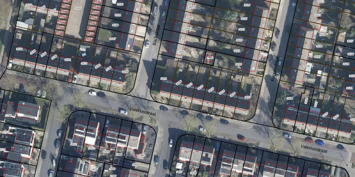 Gebruik de zoekbalk of klik op een perceel voor informatie over de adressen binnen dit perceel.