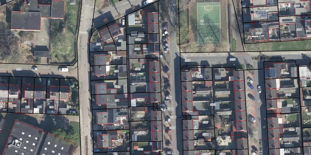 Het perceel waarop Van Nispenstraat 12 staat heeft een oppervlakte van 471 m². Dit is een groot perceel. De perceeloppervlakte wordt geregistreerd door het Kadaster. Gedetailleerde informatie over de maten van dit perceel kunt u vinden in het rapport Kadastrale kaart met maatvoering van Van Nispenstraat 12.