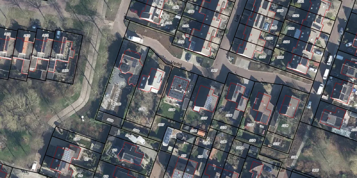 Het perceel waarop Vedel 21 staat heeft een oppervlakte van 442 m². Dit is een groot perceel. De perceeloppervlakte wordt geregistreerd door het Kadaster. Gedetailleerde informatie over de maten van dit perceel kunt u vinden in het rapport Kadastrale kaart met maatvoering van Vedel 21.