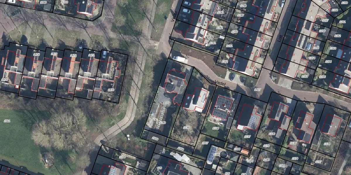 Het perceel waarop Vedel 25 staat heeft een oppervlakte van 657 m². Dit is een groot perceel. De perceeloppervlakte wordt geregistreerd door het Kadaster. Gedetailleerde informatie over de maten van dit perceel kunt u vinden in het rapport Kadastrale kaart met maatvoering van Vedel 25.