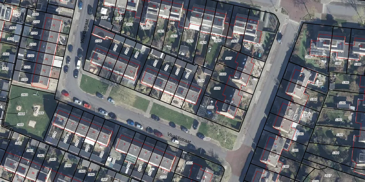 Het perceel waarop Vivaldistraat 4 staat heeft een oppervlakte van 159 m². Dit is een middelgroot perceel. De perceeloppervlakte wordt geregistreerd door het Kadaster. Gedetailleerde informatie over de maten van dit perceel kunt u vinden in het rapport Kadastrale kaart met maatvoering van Vivaldistraat 4.