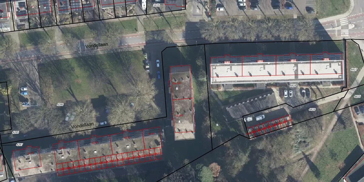 Vondellaan 112 is gelegen op kadastraal perceel ZVN02C4288. Deze kadastrale aanduiding is uniek en wordt gebruikt door het Kadaster om eigendomsrechten en andere zakelijke rechten vast te leggen. Het perceel maakt onderdeel uit van de kadastrale gemeente Oud-Zevenaar.