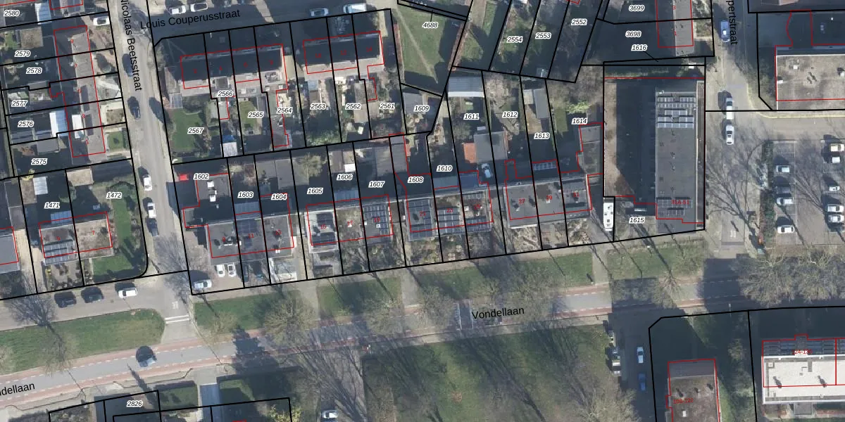 Vondellaan 21 is gelegen op kadastraal perceel ZVN02C1608. Deze kadastrale aanduiding is uniek en wordt gebruikt door het Kadaster om eigendomsrechten en andere zakelijke rechten vast te leggen. Het perceel maakt onderdeel uit van de kadastrale gemeente Oud-Zevenaar.