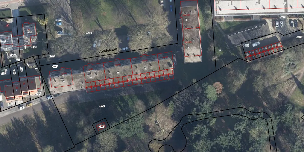 Vondellaan 24-G015 is gelegen op kadastraal perceel ZVN02C4288. Deze kadastrale aanduiding is uniek en wordt gebruikt door het Kadaster om eigendomsrechten en andere zakelijke rechten vast te leggen. Het perceel maakt onderdeel uit van de kadastrale gemeente Oud-Zevenaar.