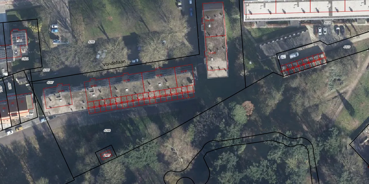 Vondellaan 24-G018 is gelegen op kadastraal perceel ZVN02C4288. Deze kadastrale aanduiding is uniek en wordt gebruikt door het Kadaster om eigendomsrechten en andere zakelijke rechten vast te leggen. Het perceel maakt onderdeel uit van de kadastrale gemeente Oud-Zevenaar.