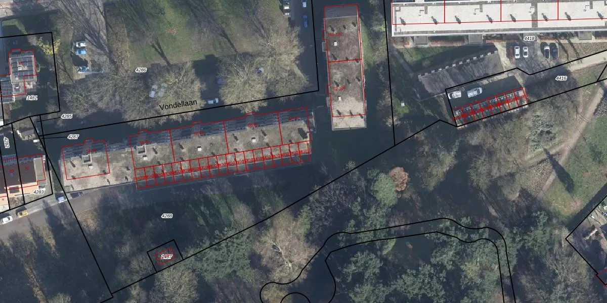 Vondellaan 24-G019 is gelegen op kadastraal perceel ZVN02C4288. Deze kadastrale aanduiding is uniek en wordt gebruikt door het Kadaster om eigendomsrechten en andere zakelijke rechten vast te leggen. Het perceel maakt onderdeel uit van de kadastrale gemeente Oud-Zevenaar.