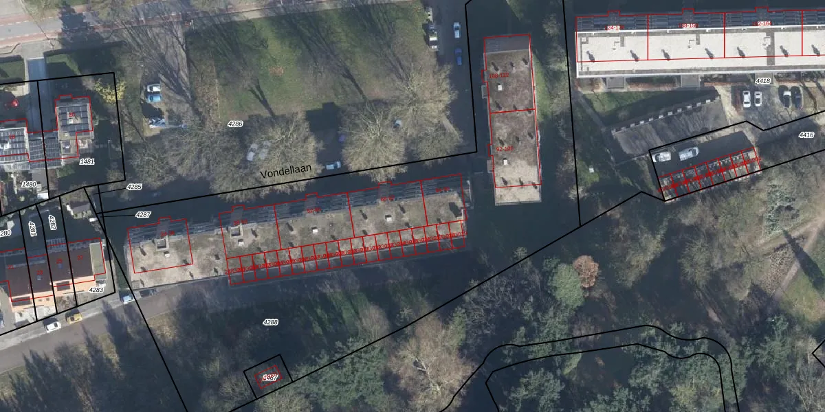 Vondellaan 78 is gelegen op kadastraal perceel ZVN02C4288. Deze kadastrale aanduiding is uniek en wordt gebruikt door het Kadaster om eigendomsrechten en andere zakelijke rechten vast te leggen. Het perceel maakt onderdeel uit van de kadastrale gemeente Oud-Zevenaar.