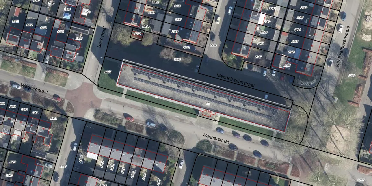 Het perceel waarop Wagnerstraat 64 staat heeft een oppervlakte van 1960 m². Dit is een zeer groot perceel. De perceeloppervlakte wordt geregistreerd door het Kadaster. Gedetailleerde informatie over de maten van dit perceel kunt u vinden in het rapport Kadastrale kaart met maatvoering van Wagnerstraat 64.
