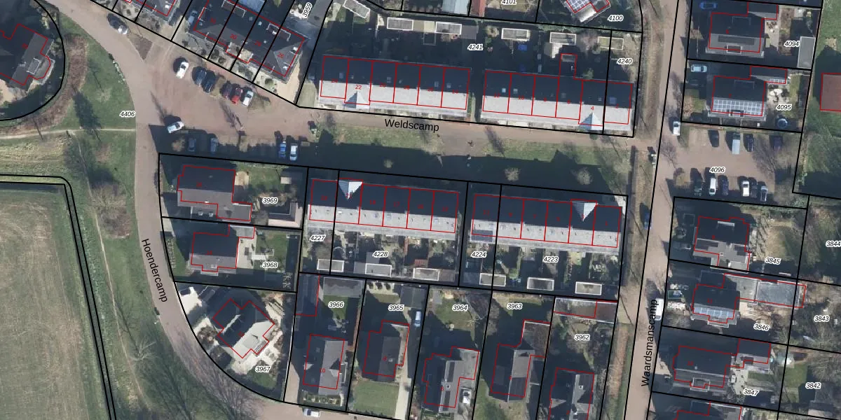 Weldscamp 15 is gelegen op kadastraal perceel ZVN02F4228. Deze kadastrale aanduiding is uniek en wordt gebruikt door het Kadaster om eigendomsrechten en andere zakelijke rechten vast te leggen. Het perceel maakt onderdeel uit van de kadastrale gemeente Oud-Zevenaar.