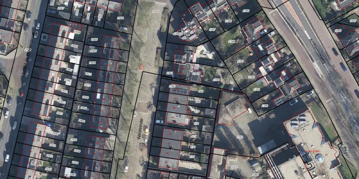 Gebruik de zoekbalk of klik op een perceel voor informatie over de adressen binnen dit perceel.